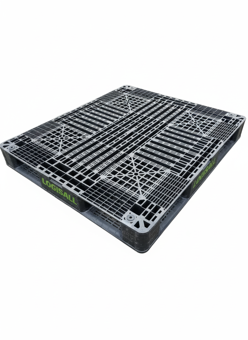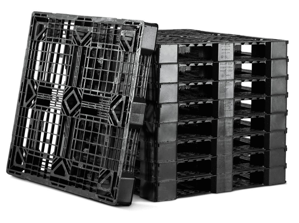 Usually High-Density Polyethylene (HDPE) or Polypropylene (PP), often utilizing recycled materials (such as their RRPP – Recycled Reusable Plastic Pallet line).